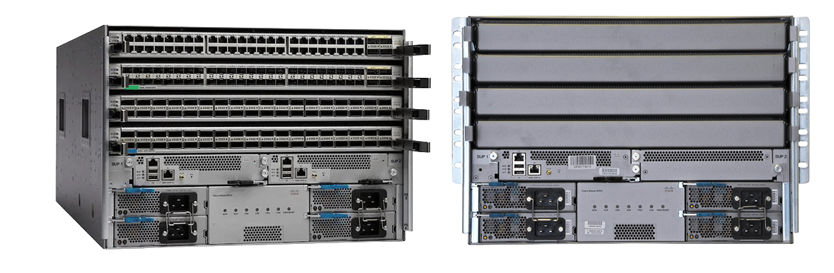 ● Up to 4 power supplies ● Up to 6 fabric modules ● Up to 2 system controllers ● Up to 2 supervisors ● Up to 3 fan trays |